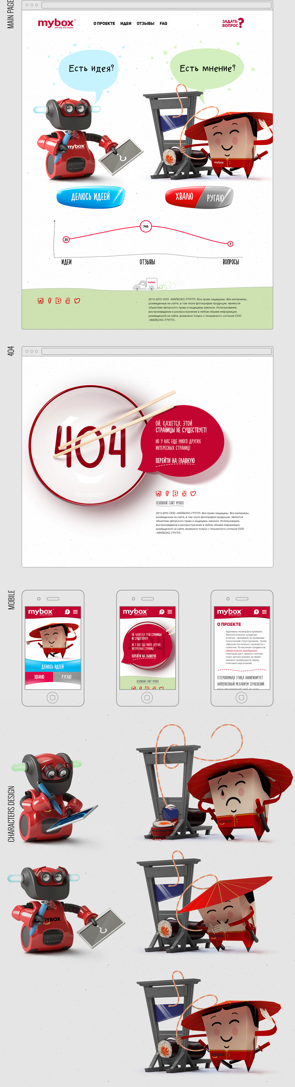 Mybox24 web service allowing customers to send complaints or suggestions on quality of work and customer service. For the project were designed and drawn characters that help to navigate the site.